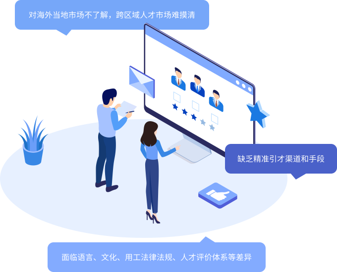 美狮贵宾会国际全球化人才配置服务,顺利获得人才地图、招聘落地、人才测评、雇佣管理、海外引才工作站等灵活多样的方式,全面解决中国企业全球化进程中人才配置与管理难题。