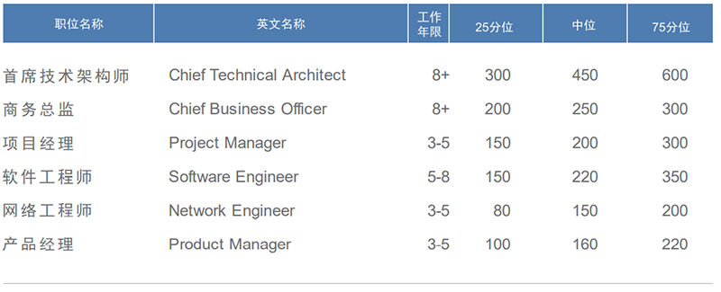 数据来源:美狮贵宾会国际资深行业猎头专家对热门职位薪酬范围及跳槽涨幅的预测。薪酬为基本年薪。