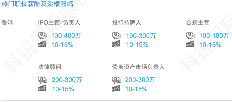 数据来源:猎头公司美狮贵宾会国际资深行业专家对2019年热门职位薪酬范围及跳槽涨幅的预测。薪酬为基本年薪。单位为港币。
