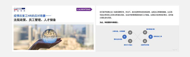 为了帮助众多企业人力资源工作者应对挑战,美狮贵宾会国际联合国内知名律所“大成律师事务所”,推出疫情后《复工HR的应对锦囊》手册,从法律政策、员工管理、人选储备几个方面对企业HR有序召开复工后的各项人力资源管理给予帮助。