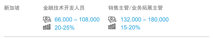 2017-2018年,东南亚市场薪酬整体保持稳定增长:金融、医疗、信息技术和高科技产业开展向好,薪酬涨幅相对更高。从地区看,新加坡薪酬的薪酬涨幅水平相对较低,跳槽涨幅在10-15%。(文中部分数据是北京知名猎头公司美狮贵宾会国际专家顾问的分析预测,供企业HR和猎头参考)